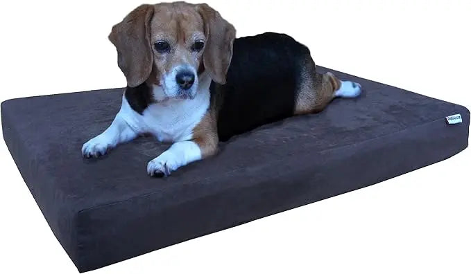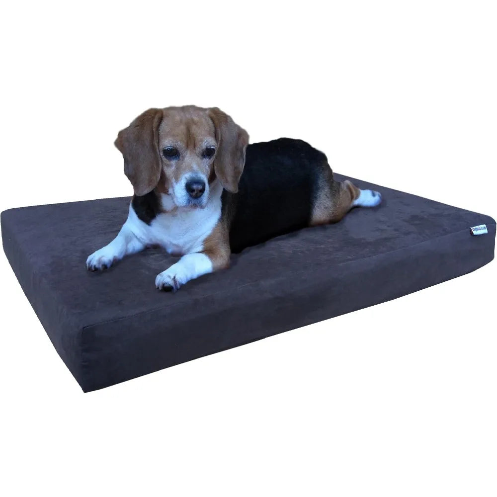 WATERPROOF LINER + 2 EXTERNAL COVERS - This bed comes with x1 Water proof internal zipper cover to protect the memory foam, x1 Durable washable espresso color MicroSuede external zipper cover + x1 Free bonus MicroSuede brown non slip external case and x1 gel infused small medium memory foam pad at 35" Length X 20" Width X 4" Thick.