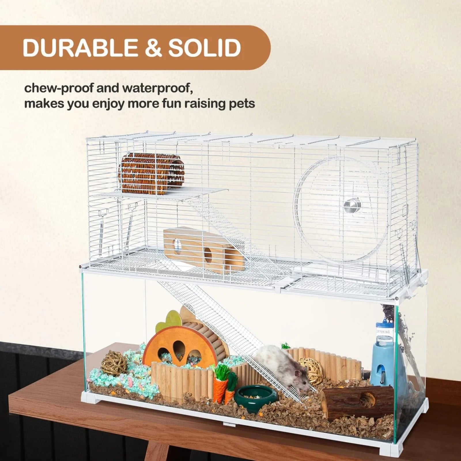 🐹🦔【Chew-proof & Safety】Unlike wooden and acrylic, glass hamster cage is no chew issues and is waterproof, making you enjoy more fun raising pets. If you have chewing issues, or worry Acrylic Hamster Cage will fade and age or are afraid that your hamster will chew through their plastic or Wooden Hamster Cage and escape, the glass hamster cage is the safest option.